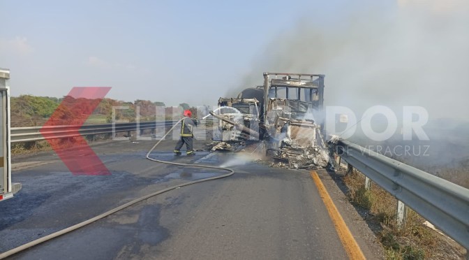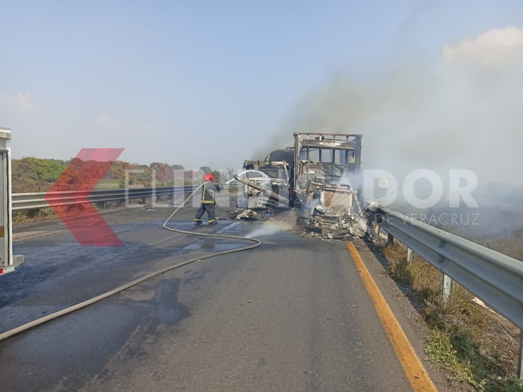 Un choque múltiple y el incendio de un tracto camión, mantiene cerrada la autopista la Tinaja Cosoleacaque, a la altura del Kilómetro 110+500, con dirección a Cosamaloapan.