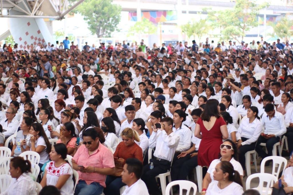 Se contó con cinco mil asistentes, hecho que agradeció el titular de la Secretaría de Educación de Veracruz (SEV), quien durante su mensaje explicó que hoy se sumaron los trabajos de las subsecretarías de Educación Básica y Media Superior y Superior a la estrategia federal “Si te drogas, te dañas”, y la estatal “No te la juegues con las drogas”, enfocadas en la prevención de las adicciones y el bienestar de las y los menores.