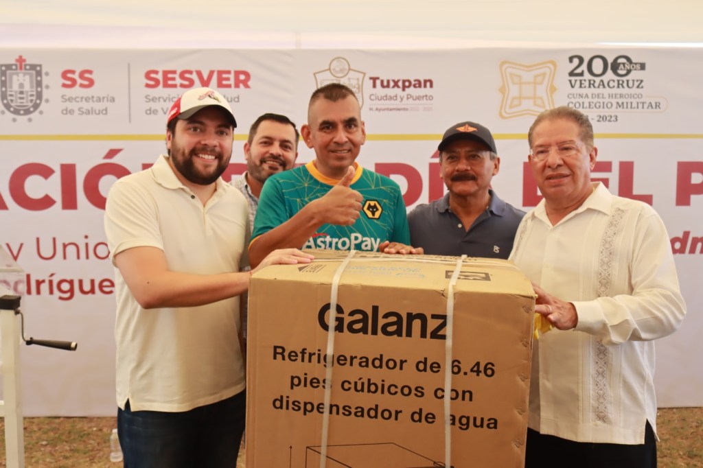 Tuxpan, Ver., 19 de junio de 2023.- Jorge Sisniega Fernández, celebró a los papás de la Sección 26 Zona Norte del Sindicato Nacional de Trabajadores de la Salud (SNTSA), con un encuentro deportivo, concursos y rifas, reiteró la importancia de los papás trabajadores en el sistema estatal de salud.
