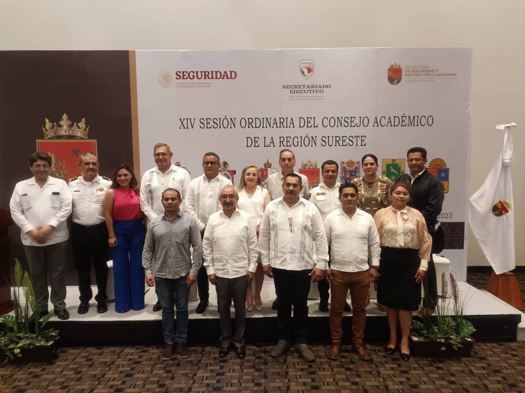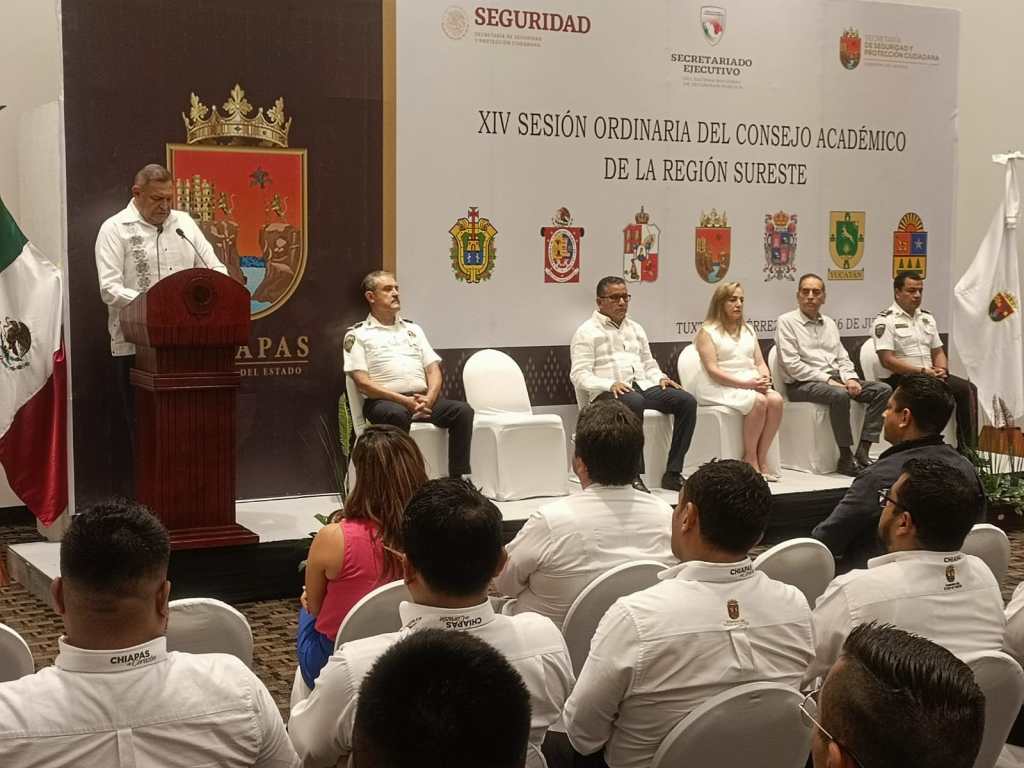 Xalapa, Ver., 19 de junio del 2023.- Siguiendo la encomienda del Gobernador, Cuitláhuac García Jiménez de trabajar para coadyuvar el fortalecimiento de las Instituciones de Formación, Capacitación y Profesionalización Policial; la Secretaría de Seguridad Pública a través del Centro de Estudios e Investigación en Seguridad participó en la Décima Cuarta Sesión Ordinaria del Consejo Académico de la Región Sureste en el estado de Chiapas.