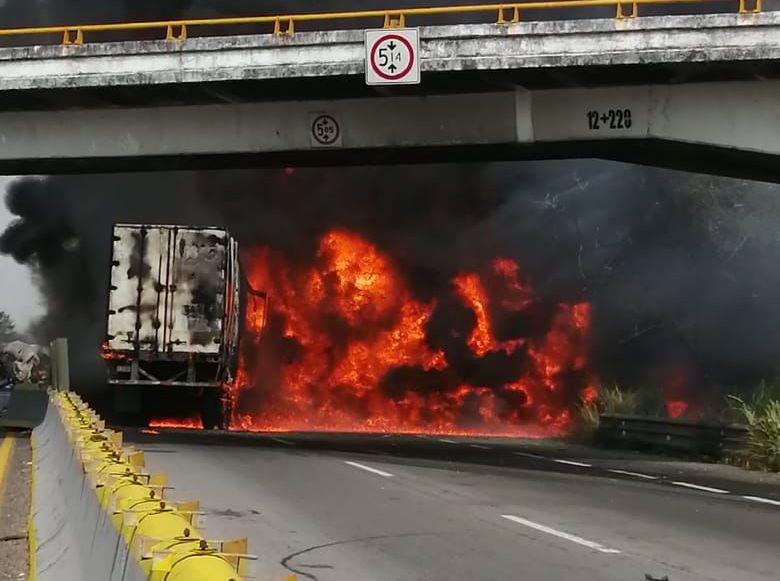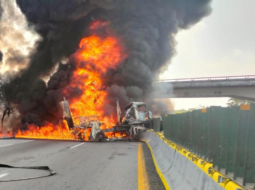 Debido al fuerte impacto de la pesada unidad fue cerrada la vialidad mientras que personal de bomberos apagaba el incendio quedando varados vehículos a lo largo de varios kilómetros. El cuerpo de la persona que desgraciadamente perdió la vida, fue retirado por personal de servicios periciales.