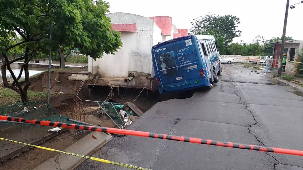 Veracruz, Ver.- La Secretaria de Protección Civil aseguró que derivado de las lluvias registradas durante la madrugada y mañana de este jueves, se registran dos hundimientos en la zona norte del Puerto de Veracruz: En la calle de Río Rhin con Río Guadiana y Río Duero, en el fraccionamiento Lomas IV, en el que se vio afectado un vehículo sedán, y en Amatzinac esquina Texolo, en la colonia Torrentes, en el que se vio afectado un autobús de transporte urbano.