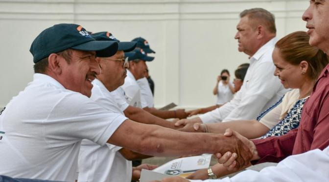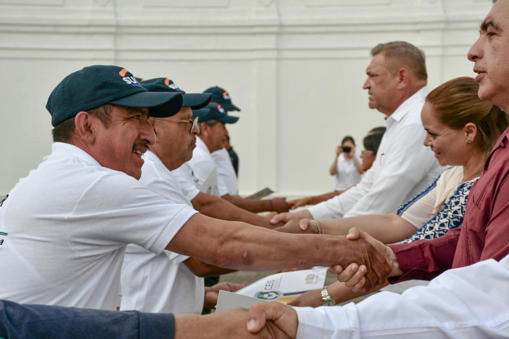 El Director General, Ing. Jaime Herrera Romo acompañado por el Arquitecto Antero Borboa Lara, Director del Sistema Universitario de Gestión Integral del Riesgo de la Universidad Veracruzana, entregaron las constancias al personal que concluyó el curso.