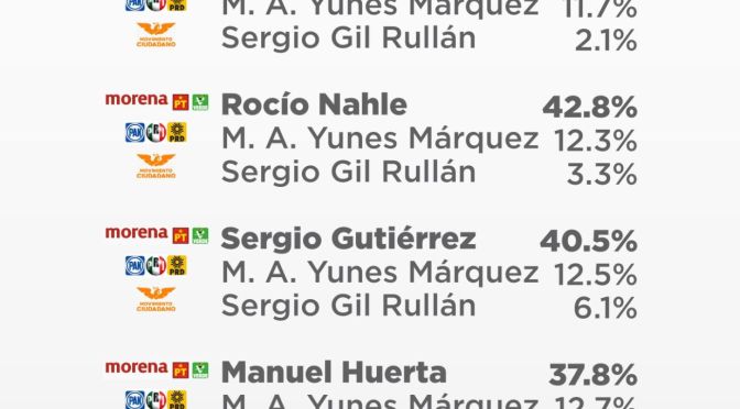 - Rocío Nahle y Zenyazen Escobar con mejores porcentajes.