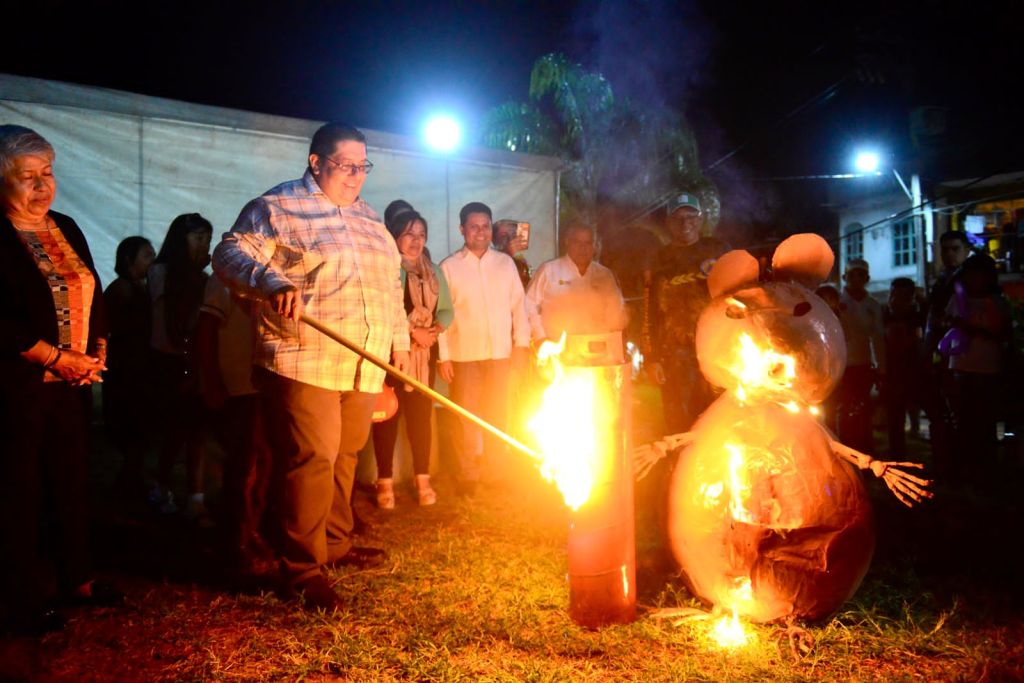 Fue en punto de las ocho de la noche del viernes 30 de junio que se realizó la “quema del mal humor” donde le prendieron fuego a una rata para acabar con los robos a la casa habitación que se han registrado junto con la estrategia de seguridad que se ha hecho en el municipio.