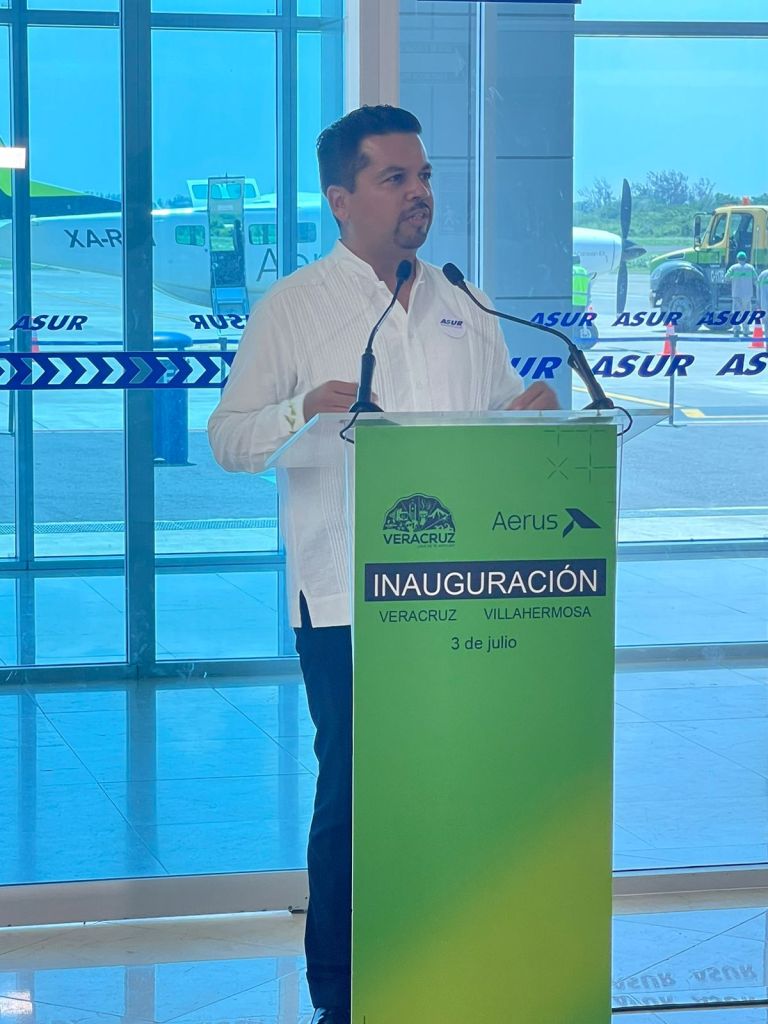 Veracruz, Ver., 3 de julio de 2023.- Veracruz cuenta con una nueva alternativa en conectividad aérea con la inauguración del nuevo vuelo Veracruz-Villahermosa de la aerolínea “Aerus”, que sin duda incrementará la afluencia del segmento de negocios y esparcimiento, dando como resultado un beneficio al sector turístico de la región Primeros Pasos de Cortés con 10 frecuencias a la semana hacia Tampico, Tamaulipas y Villahermosa, Tabasco.