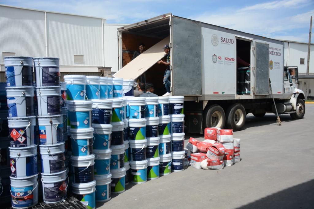 Entre los materiales entregados por la SS|SESVER están: pintura vinílica, esmalte, impermeabilizantes, accesorios de aplicación y resane; insumos eléctricos como contactos, tubos y focos led, lámparas plafoneras, lámparas cuadradas, cables calibre 11 y 12; tablaroca, puertas, bisagras y chapas; en equipo hidrosanitario, lavabos, WC, mezcladoras, llaves angulares, fluxómetros de pedal, soportes y cespol para lavabo.