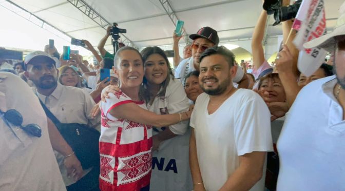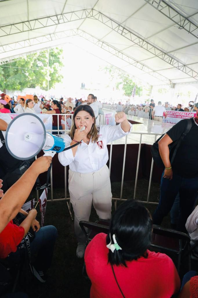 Ante integrantes de la Red #EsClaudiaVeracruz, que coordina en el estado Darian Escobar López, Sheinbaum Pardo agradeció el respaldo que le ofrecen las mujeres veracruzanas, el cual quedó demostrado este día en el campo de futbol “El rodeo” con la presencia de miles de asistentes procedentes de municipios del sur de la entidad, como Las Choapas, Coatzacoalcos, Minatitlán, Acayucan, San Andrés, Santiago Tuxtla y Hueyapan de Ocampo.