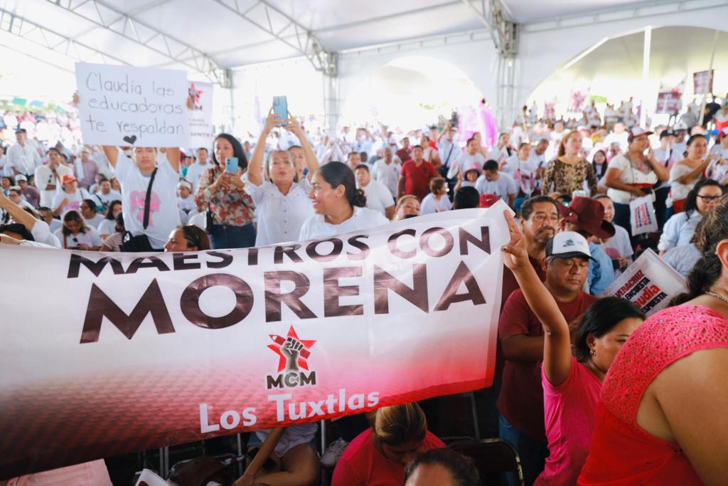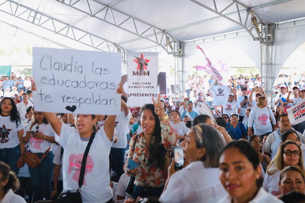 Con porras y principalmente mensajes de apoyo, el magisterio demostró que está listo para acompañar a una mujer en su carrera por la continuidad de la Cuarta Transformación.