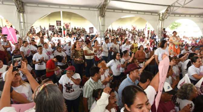 Catemaco, Ver., 13 de julio de 2023.- Miles de docentes integrantes de la organización Maestros Con Morena (MCM) refrendaron su apoyo y respaldo a la aspirante a la Coordinación Nacional de la Defensa de la Cuarta Transformación, Claudia Sheinbaum Pardo, durante su visita a este municipio.