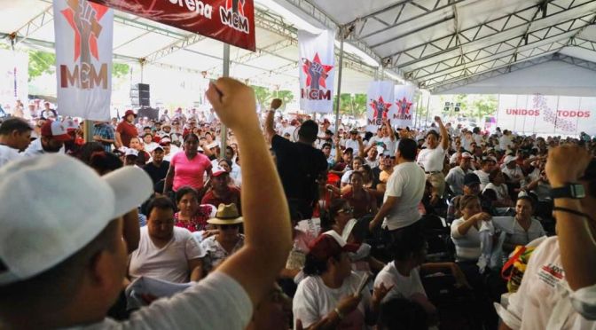 Veracruz, Ver., 14 julio 2023.- Al grito de “¡Es un honor estar con la mejor!”, integrantes de Maestros Con Morena (MCM) ovacionaron a Claudia Sheinbaum, aspirante a la Coordinación Nacional por la Defensa de la Transformación, durante su visita al puerto.