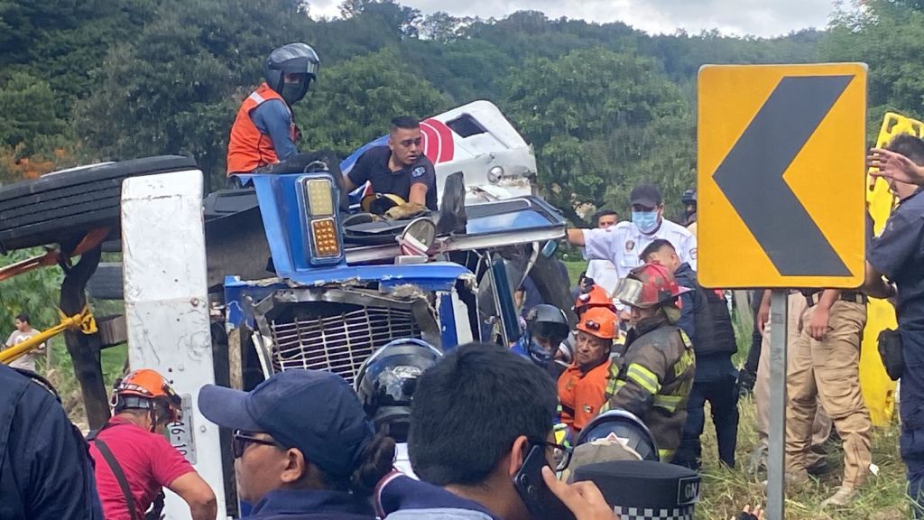 El chofer del tráiler fue extraído entre los fierros por personal del Escuadrón Nacional de Rescate, y trasladado a un nosocomio para su atención médica.