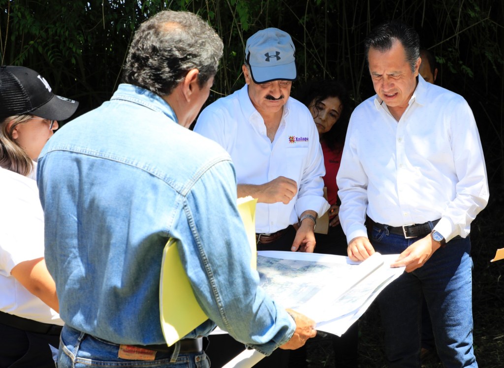Xalapa, Ver.- Para conocer las condiciones de la nueva área verde patrimonio de la ciudad, el presidente municipal Ricardo Ahued Bardahuil y el gobernador Cuitláhuac García Jiménez recorrieron el predio de 60 mil metros cuadrados recién adquirido en la zona de Coapexpan.