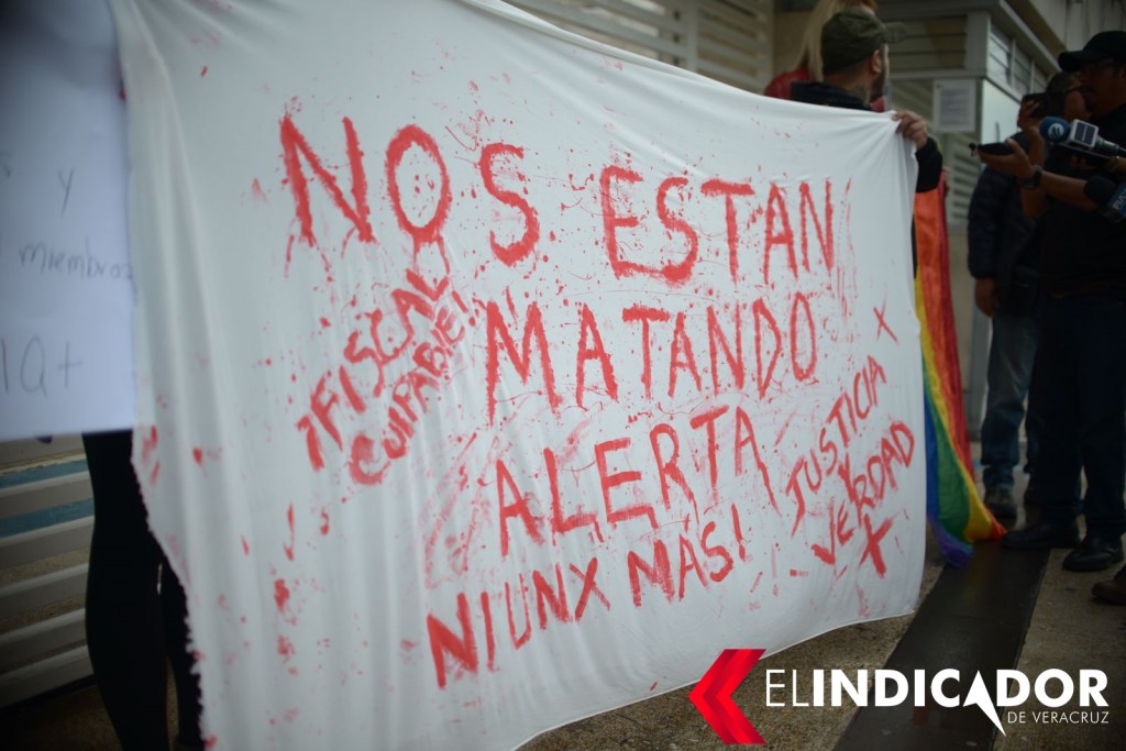 Xalapa, Ver- Colectivos LGBTTTIQ+ se manifestaron de forma pacífica frente a las instalaciones de la Fiscalía General del Estado (FGE), para exigir así avances en las investigaciones relacionadas con crímenes de odio a este sector de la poblacion.
