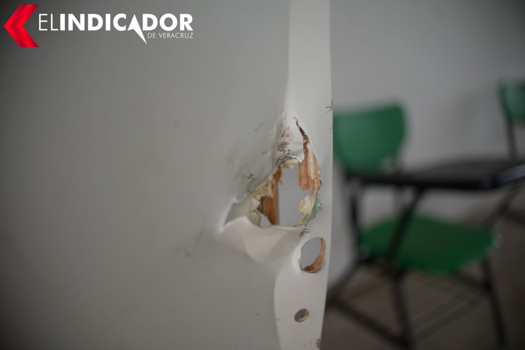 “En los demás salones, estos tres y pues también estaban abiertos completamente la puerta destruida también lo que fue la herrería también. Se llevaron tres televisiones; también se llevaron dos proyectores de dos salones también completamente nuevos apenas los adquirimos en el mes de mayo y pues también se llevaron en papelería, una bocina incluso hasta las cortinas de las aulas se las llevaron”, argumentó.