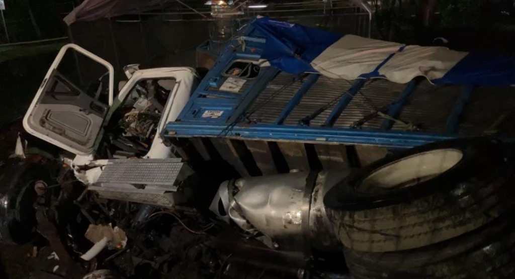 Reportes de las corporaciones de rescate mencionan que un torton cargado de tomate perdió el control al circular por esta avenida y se impacta contra dos autos compactos y una combi de servicio de transporte público.