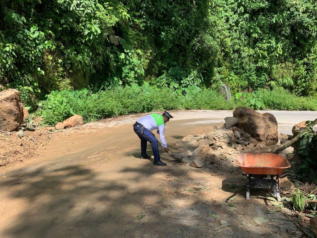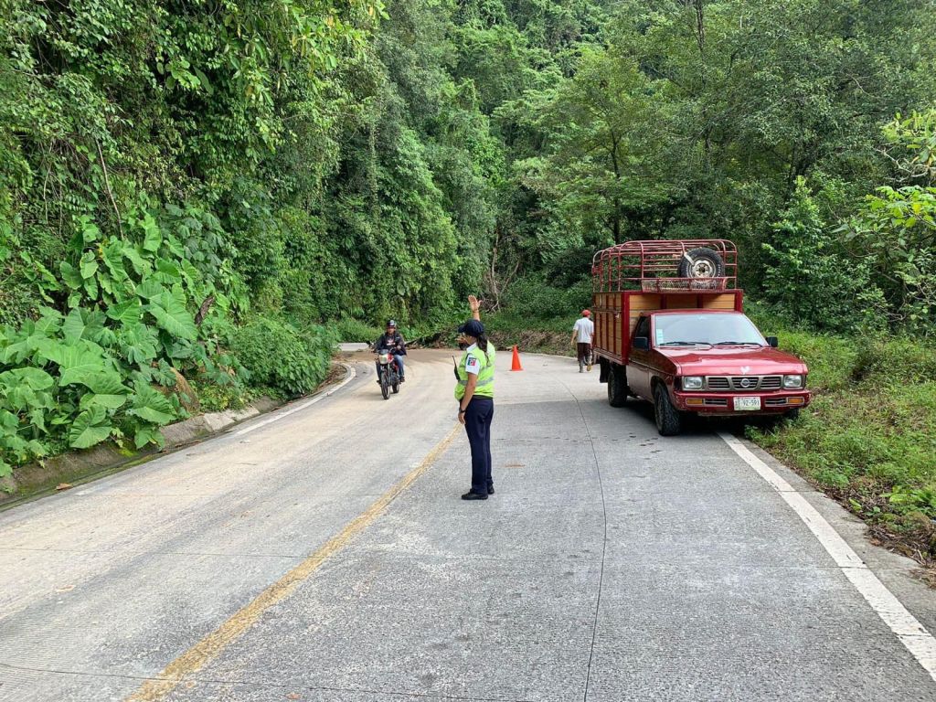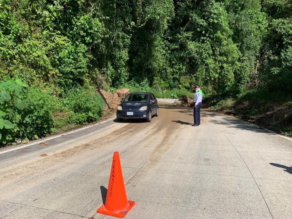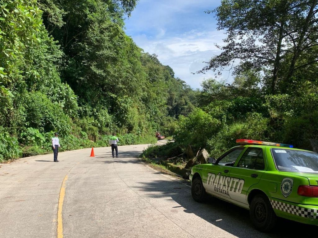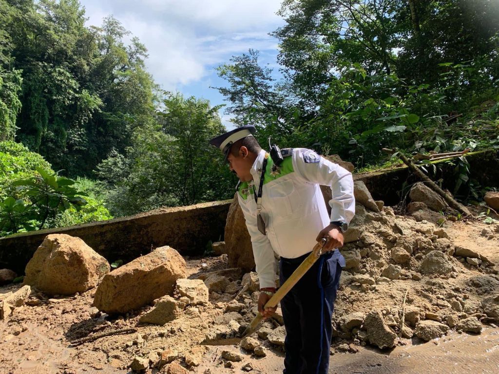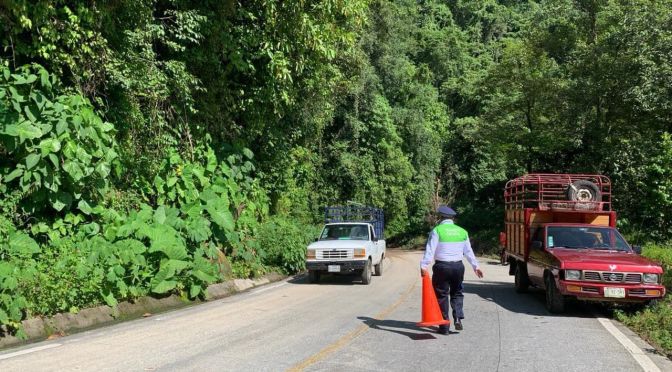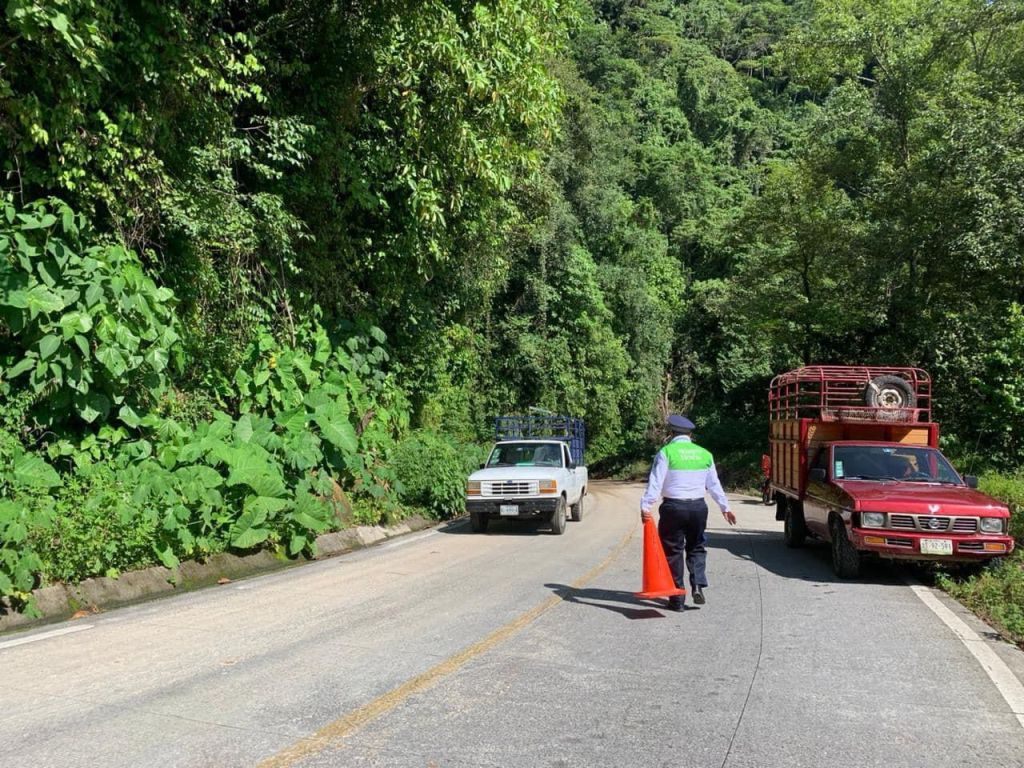 La Secretaría de Seguridad Pública, a través de elementos de Dirección General de Tránsito y Seguridad Vial de delegación Yecuatla brinda apoyo y seguridad vial sobre la carretera estatal Misantla-Banderilla, debido a los daños provocados por un deslave suscitado en la madrugada.