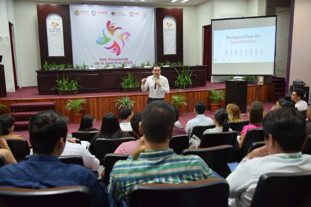 En el auditorio Sebastián Lerdo de Tejada del Palacio Legislativo, este jueves, inició el XVIII Parlamento de la Juventud Veracruzana 2023, organizado por la Comisión Permanente de Juventud, Deporte y Atletas con Discapacidad, el Instituto Veracruzano de la Juventud (IVJ) y la Secretaría de Educación de Veracruz (SEV), como un espacio que permitirá a las y los jóvenes del estado dar a conocer sus opiniones y propuestas y desarrollar sus capacidades en el ámbito legislativo.