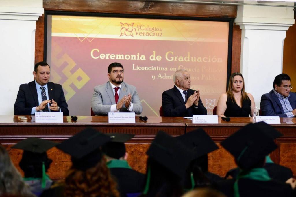 Xalapa, Ver., 18 de agosto de 2023.- “La política se vuelve virtud cuando se pone al servicio del pueblo”, expresó el secretario de Educación, Zenyazen Escobar García, quien asistió a la Ceremonia de Graduación de la Generación 2019-2023 de la Licenciatura en Ciencia Política y Administración Pública del Colegio de Veracruz (COLVER).