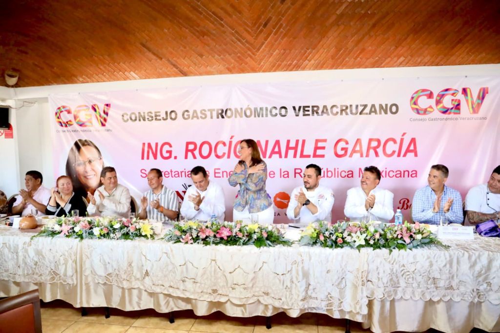Coatepec, Ver.- Como parte de su gira de trabajo en esta zona del Estado, la Secretaria de Energía, Rocío Nahle García, se reunió con integrantes del Consejo Gastronómico Veracruzano A.C. (CGV), presidido por Sergio Santos Monfil, donde confirmó que por instrucciones del presidente Andrés Manuel López Obrador se están analizando en conjunto con la Comisión Nacional del Agua (Conagua), las tarifas eléctricas de 2,500 municipios del país, incluidos los veracruzanos que hoy por hoy han solicitado tarifas más económicas.