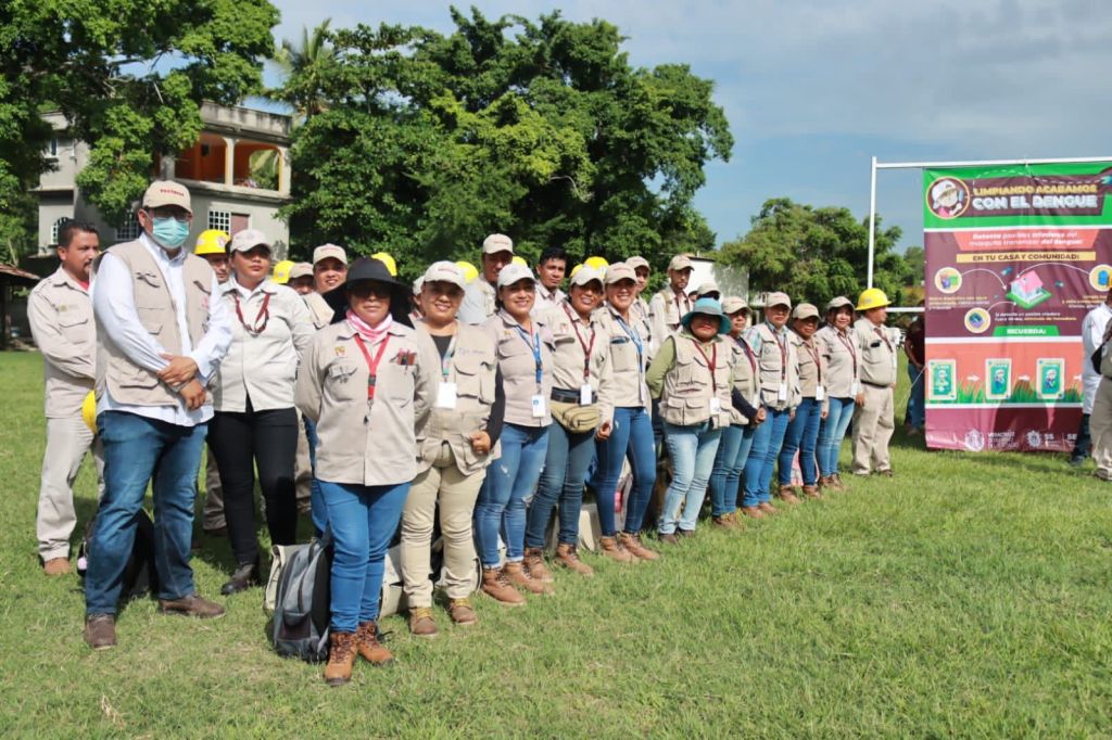 Reunidos en el Campo de la 16, desde donde arrancaron las actividades sanitarias este viernes, Jorge Sisniega, agradeció el esfuerzo y compromiso del gran equipo de vectores de la Jurisdicción Sanitaria No. II de Tuxpan, que siguiendo la instrucción del Gobernador, Cuitláhuac García Jiménez, llevan a cabo los programas de combate al dengue, con el fin de proteger la salud de las familias veracruzanas.