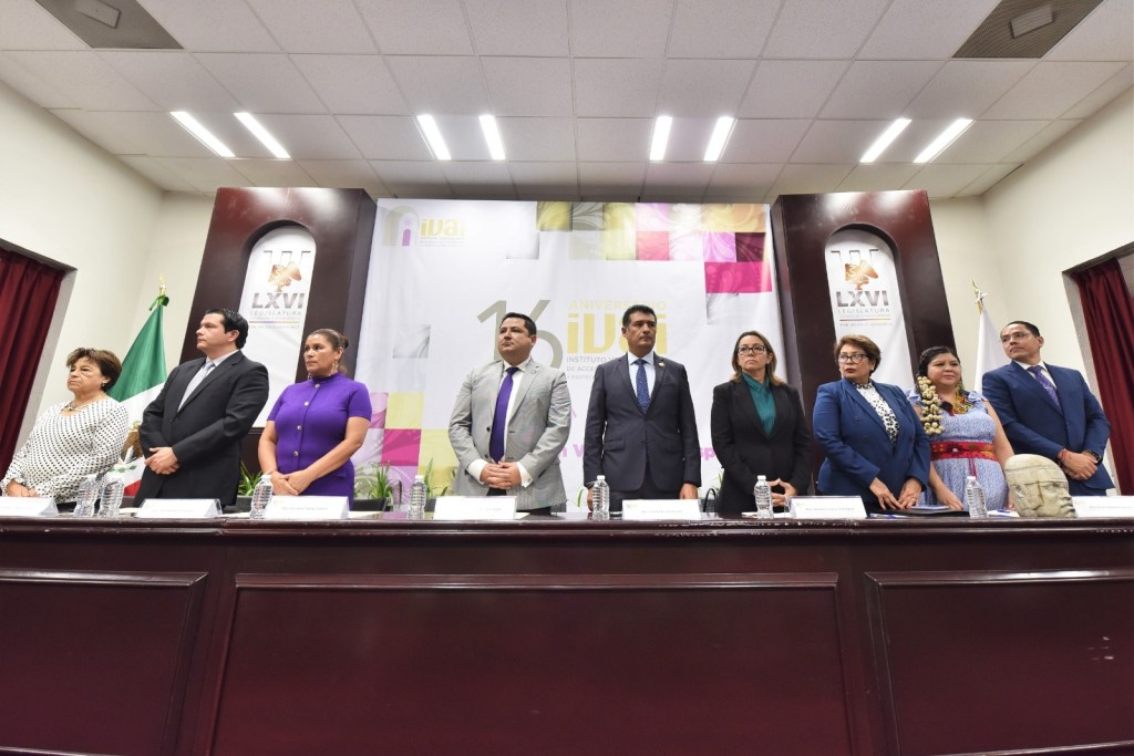 También en el presídium, la titular de la Contraloría General del Estado (CGE), Mercedes Santoyo Domínguez; el comisionado del Instituto de Acceso a la Información y Protección de Datos Personales de Quintana Roo y coordinador de la Región Sureste del Sistema Nacional de Transparencia, Roberto Agundis Yerena, y la presidenta del Consejo Consultivo Indígena del estado, Rosita Martínez Facundo, hicieron uso de la palabra y se unieron al reconocimiento de la labor del IVAI.
