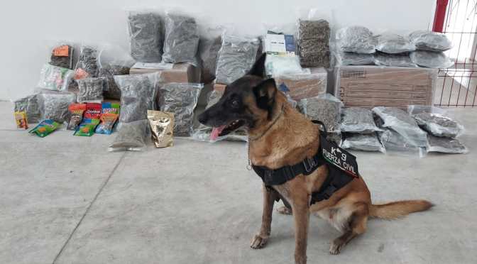 Los hechos ocurrieron cuando los oficiales llevaban a cabo un operativo en un establecimiento dedicado al envió de paquetería en la colonia Jacarandas, ahí los agentes caninos hicieron un marcaje positivo a quince paquetes.