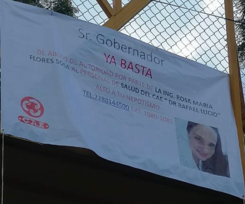 En la lona se acusa de abuso de autoridad y nepotismo a la Ing. Rosa María Flores Sosa y es que hace unos días, más de 50 trabajadores entre enfermeros y de diferentes áreas de este nosocomio fueron rescindidos de sus contratos, sin explicacion alguna.