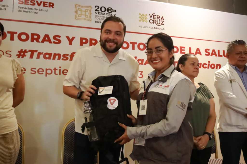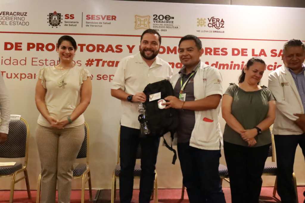 En el significativo encuentro realizado en la ciudad de Tuxpan, las y los promotores de la salud, recibieron kits de trabajo así como reconocimientos por parte del Director Administrativo, Jorge Sisniega Fernández, la Directora de Salud Pública, Jessica Kristal Ríos Mercadante y el Jefe de la Jurisdicción Sanitaria II, Cuauhtémoc Pérez Juárez.