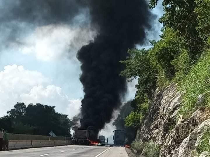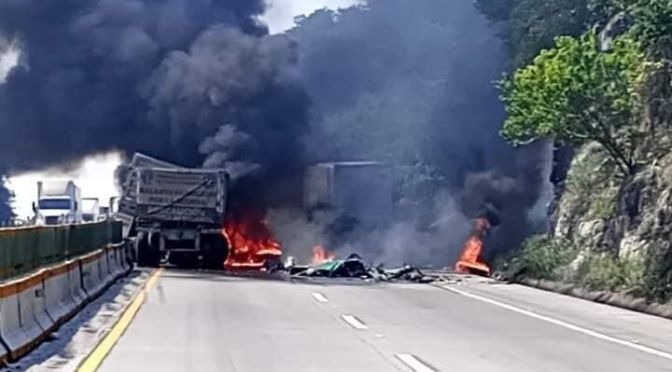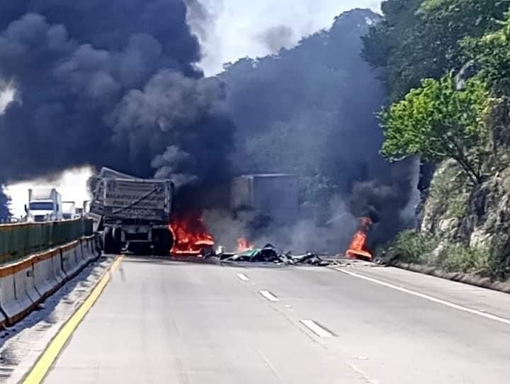 Las fuerzas de tarea que atienden el accidente registrado en la autopista Córdoba – Veracruz a la altura del km 17+800 indican que se vieron afectados dos vehículos tipo tractocamión, que se incendiaron al momento del choque.