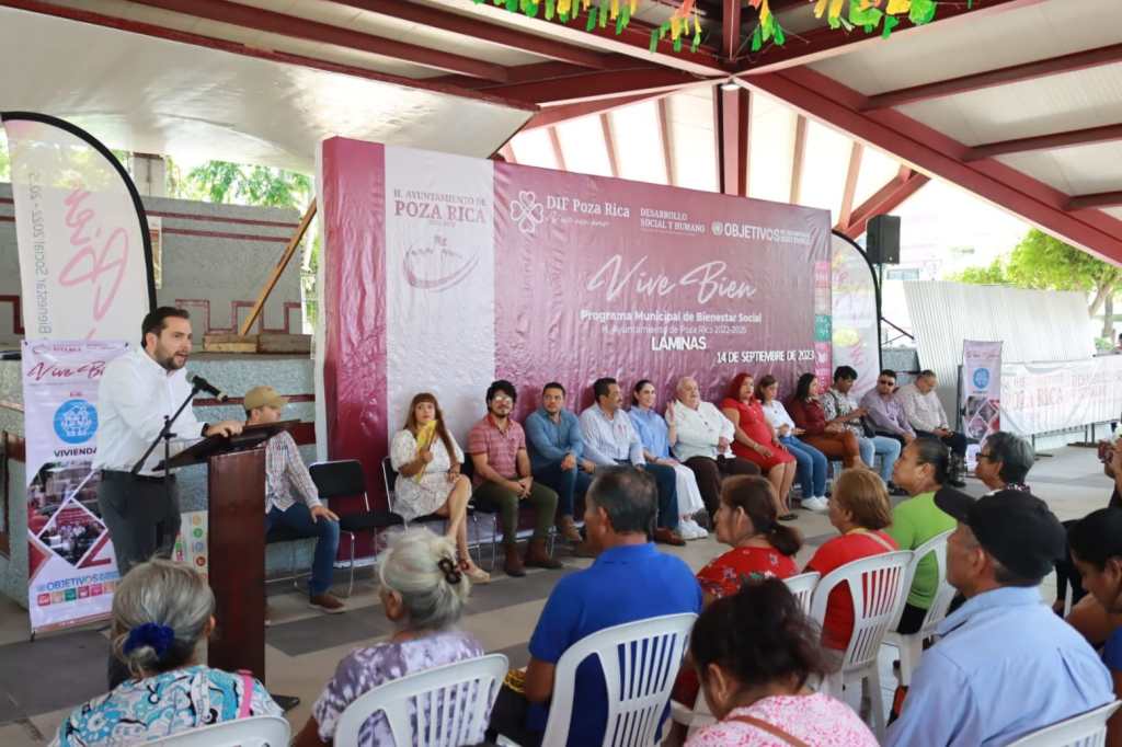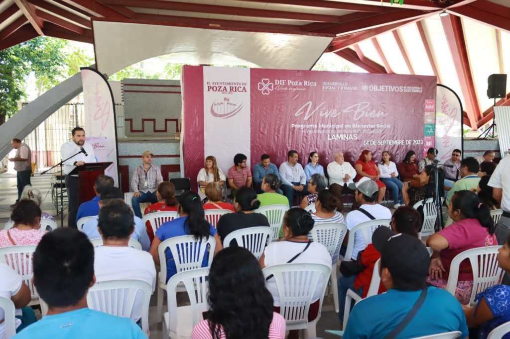 Poza Rica, Ver., 14 de septiembre de 2023.- Al participar en la tercera entrega de láminas del programa municipal “Vive Bien” en Poza Rica, el Director Administrativo de Servicios de Salud de Veracruz, Jorge Sisniega Fernández, resaltó que el buen manejo de los recursos públicos y la coordinación entre gobiernos e instituciones, permite consolidar los objetivos de la Cuarta Transformación, donde la prioridad es el acercamiento con la gente, su bienestar y su desarrollo social.