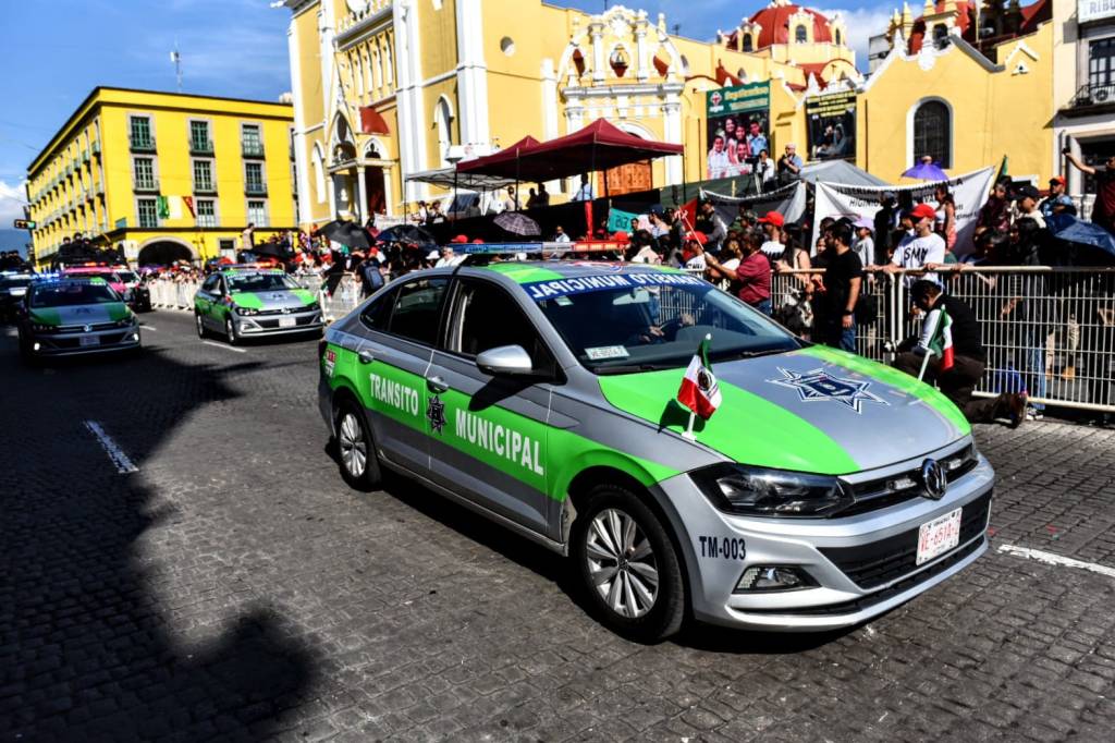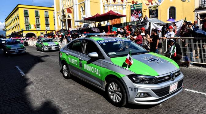 Xalapa, Ver.- Junto con más de mil elementos de distintas dependencias como la Secretaría de la Defensa Nacional (Sedena) y la Secretaría de Seguridad Pública del Estado de Veracruz (SSP), personal de la Policía Municipal participó en el desfile alusivo al 213 Aniversario de la Independencia de México.