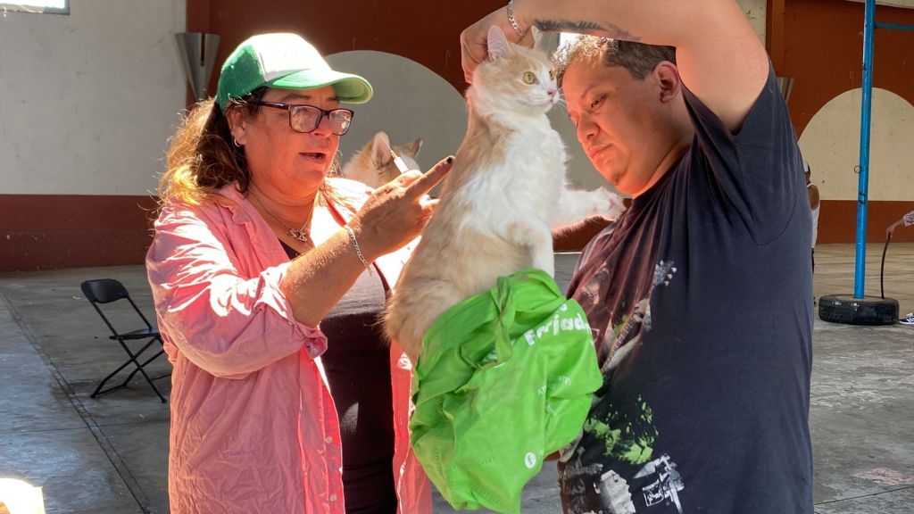«Ahorita en la segunda etapa llevamos ahorita empezamos el 24 de septiembre en la colonia San Isidro, colonia San Martin y al día de hoy llevamos mil 50 perros; entre perros y gatos. 800 perros lo demás sería de gatos casi 300 gatos hembras y machos».