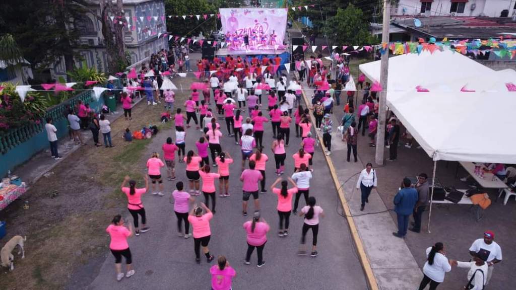 Para arrancar con la Zumba, abrió el evento el actual Rey del Carnaval de Veracruz, Julio César «El Cremas» Vargas, quien además de instructor es licenciado en enfermería, por consiguiente, en el marco del mes de concientización contra el cáncer de mama, enseñó técnicas de autoexploración a las asistentes, contribuyendo así a la prevención de esta terrible enfermedad.