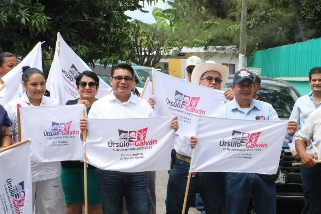 Úrsulo Galván, Ver. – La entrada a la comunidad de Cempoala lucirá con la nueva pavimentación con adoquines, guarniciones y banquetas en la privada 21, ubicada entre las calles Carmen Viveros y Prof. Pérez Ruiz, misma que da acceso a la clínica 21 del Instituto Mexicano del Seguro Social (IMSS). El alcalde Eder Jero Hernández Lara y el cabildo del H. Ayuntamiento encabezaron el banderazo de inicio de esta obra.