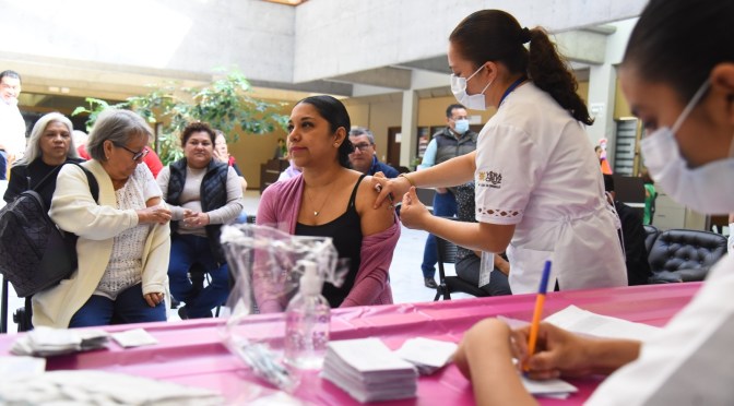 Tras asegurar que la prevención es fundamental para disminuir la propagación de enfermedades respiratorias, la doctora Claudia del Rosario García informó que personal de la Secretaría de Salud (SS) aplicó 150 dosis de la vacuna contra la influenza a igual número de trabajadoras y trabajadores del Congreso y sus familias.