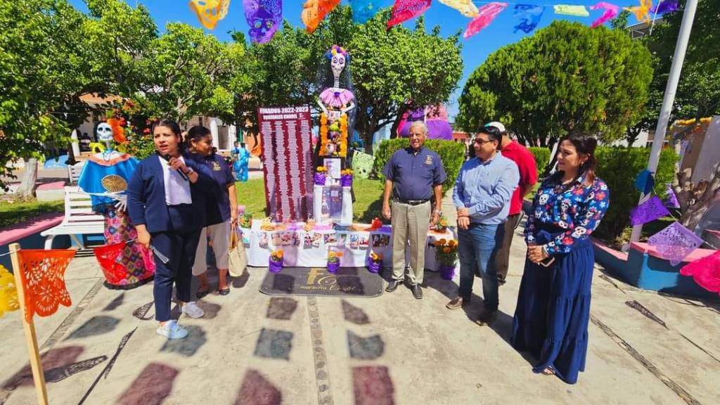 Eder Jero detalló que la elaboración del altar en el kiosco del parque principal de la cabecera municipal fue encabezado por la síndica única, Matilde López Castillo, la directora del Instituto Municipal de las Mujeres (IMMUJER), Claudia Utrera Ramírez y el director de educación, Jacinto Vela Pérez, con la participación de elementos de protección civil.
