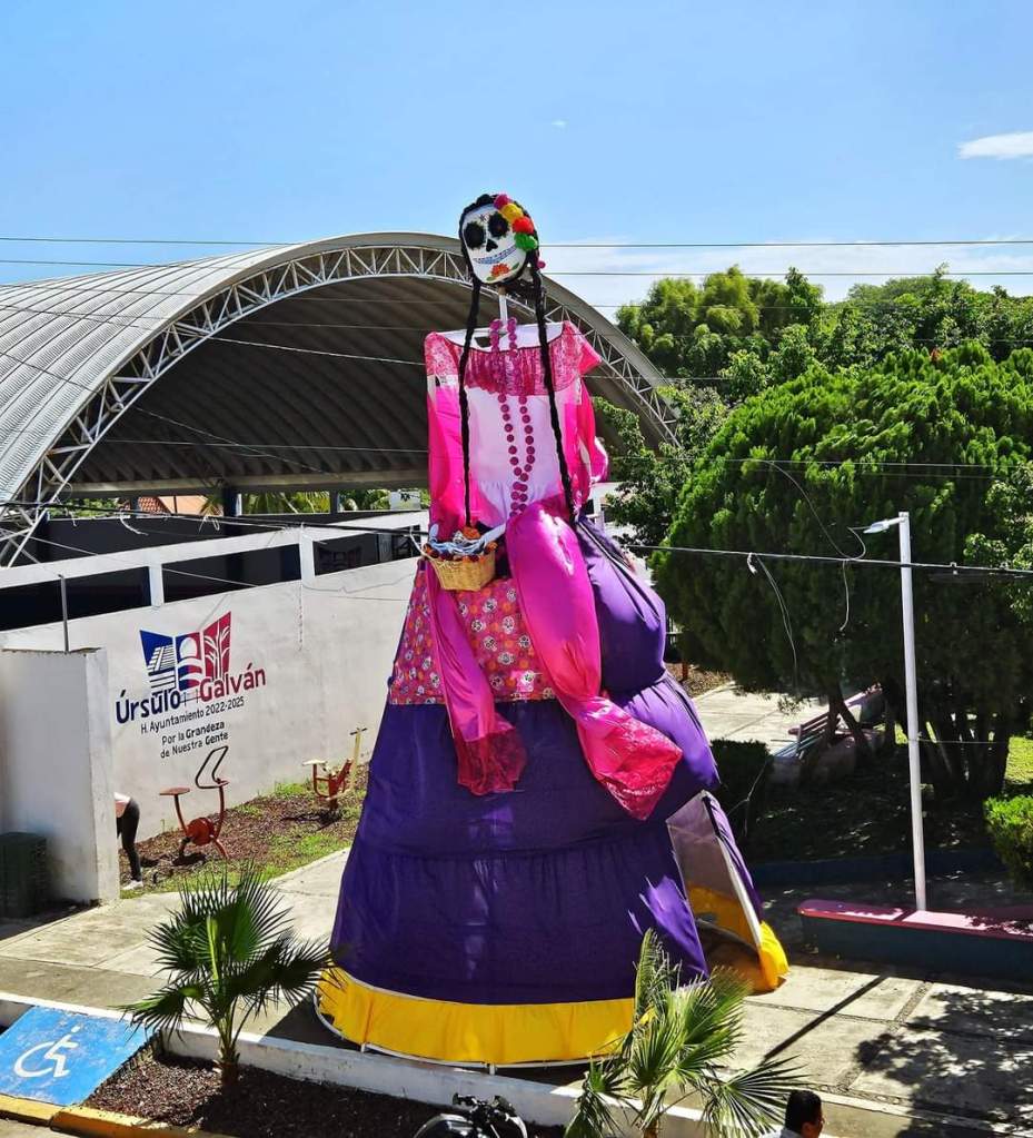 Úrsulo Galván, Ver. – Con la inauguración de la primera catrina monumental con más de 8 metros de altura, arrancó el festival de día de muertos en la cabecera municipal, encabezado por el alcalde, Lic. Eder Jero Hernández Lara, donde se llevó a cabo una muestra de altares por parte de distintos planteles educativos, así como la exposición de catrinas elaboradas en los talleres del sistema DIF Municipal.