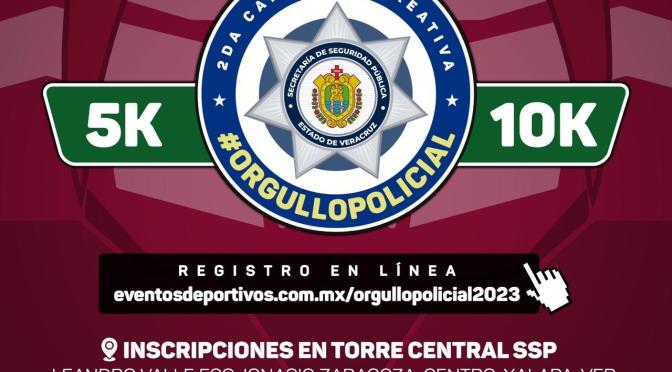 Xalapa, Ver., 02/11/23.- El domingo 19 de noviembre podrás ser parte de la segunda carrera recreativa #OrgulloPolicial y conocer, en familia o con amigos, las funciones que realizan las diversas áreas de la Secretaría de Seguridad Pública (SSP) en los módulos y actividades complementarias al recorrido en el Estadio Heriberto Jara Corona, a partir de las 07:00 horas.