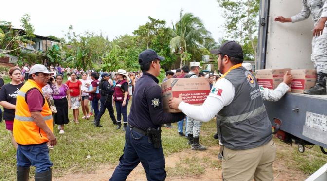 4 de noviembre de 2023, Agua Dulce, Ver.- El Gobierno del Estado a través del Sistema Estatal de Protección Civil continua mantiene la coordinación de los 3 ordenes de gobierno para la recuperación en los municipios de Agua Dulce y Las Choapas, con acciones de limpieza, distribución de insumos y restablecimiento de servicios estratégicos.