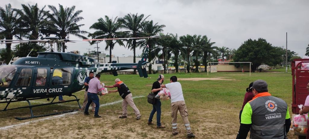 Este puente aéreo refuerza las acciones de los planes DN-III-E, Marina, Guardia Nacional y Tajín, que realizan labores de limpieza y evaluación de afectaciones, así como la atención de una brigada de la Jurisdicción Sanitaria 11 con personal médico, de vectores y de prevención de riesgos sanitarios, y la preparación y distribución de 18,080 raciones de comida caliente en la cocina móvil de SSP, complementada con la entrega de 740 paquetes de insumos alimenticios, de higiene, limpieza y abrigo de PC Estatal y mil paquetes de insumos alimenticios del DIF Estatal con un total de 60 mil raciones que garantizan la alimentación por 15 días, que el ayuntamiento de Las Choapas complementa con otros 500 paquetes de alimenticios de su reserva estratégica.