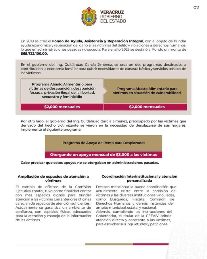 Mientras que desde la Comisión Estatal de Búsqueda (CEBV), creada en diciembre de 2018 con un presupuesto de 24 millones de pesos, y para 2023 su presupuesto fue de 27 millones.