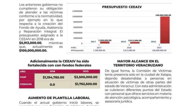 Mientras que desde la Comisión Estatal de Búsqueda (CEBV), creada en diciembre de 2018 con un presupuesto de 24 millones de pesos, y para 2023 su presupuesto fue de 27 millones.