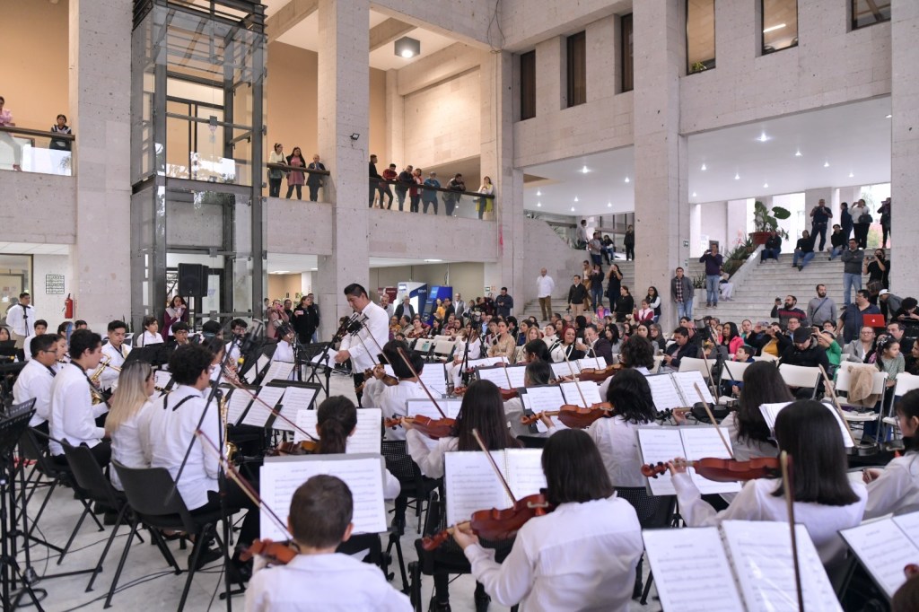 En el marco del CXIII Aniversario de la Revolución Mexicana, este jueves, la Orquesta Sinfónica Infantil y Juvenil (OSIJ) de la Secretaría de Educación de Veracruz (SEV) ofreció un concierto de música mexicana en la explanada del Palacio Legislativo.