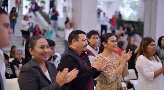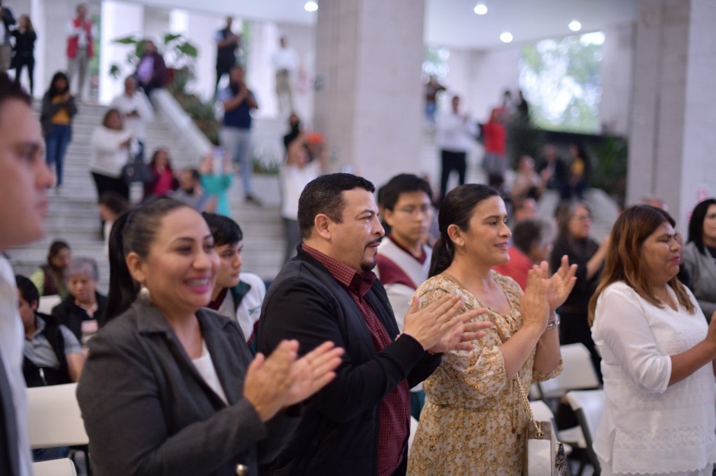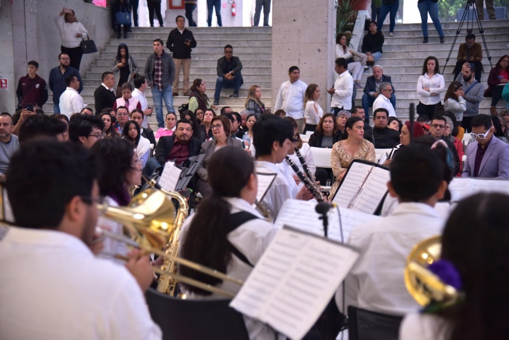 En presencia del presidente de la Junta de Coordinación Política (Jucopo), diputado Juan Javier Gómez Cazarín, la presidenta de la LXVI Legislatura, diputada Adriana Esther Martínez Sánchez, felicitó a las y los integrantes de la agrupación y les aseguró el apoyo de este Congreso en la consecución de más logros y éxitos.