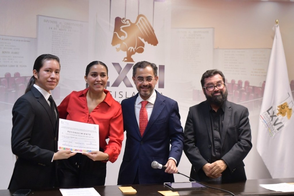 Posteriormente, la y los integrantes de la Comisión Especial procedieron a la entrega de constancias y premiación. El primer lugar fue para Rafael Pérez Ramírez con una propuesta de reforma y adición a disposiciones de la Constitución Política del Estado y la Ley contra el Acoso Escolar para el Estado, relacionada con la implementación de acciones para combatir el bullying o acoso escolar.