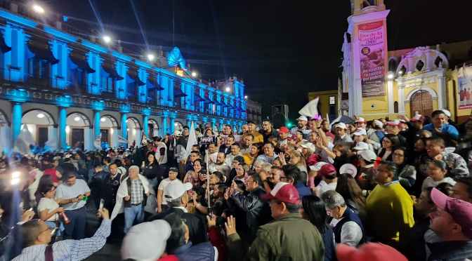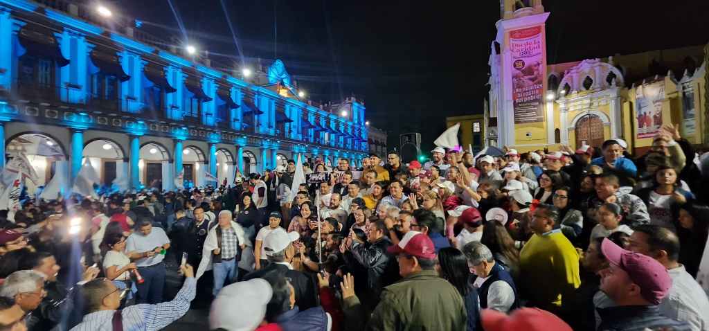 Xalapa, Ver.- Con el anuncio de Rocío Nahle como coordinadora de los comités en la defensa de la #4T en Veracruz, miles de simpatizantes abarrotaron la Plaza Lerdo de esta ciudad capital para festejar la decisión del Movimiento de Regeneración Nacional para dar continuidad al proyecto impulsado en la entidad.