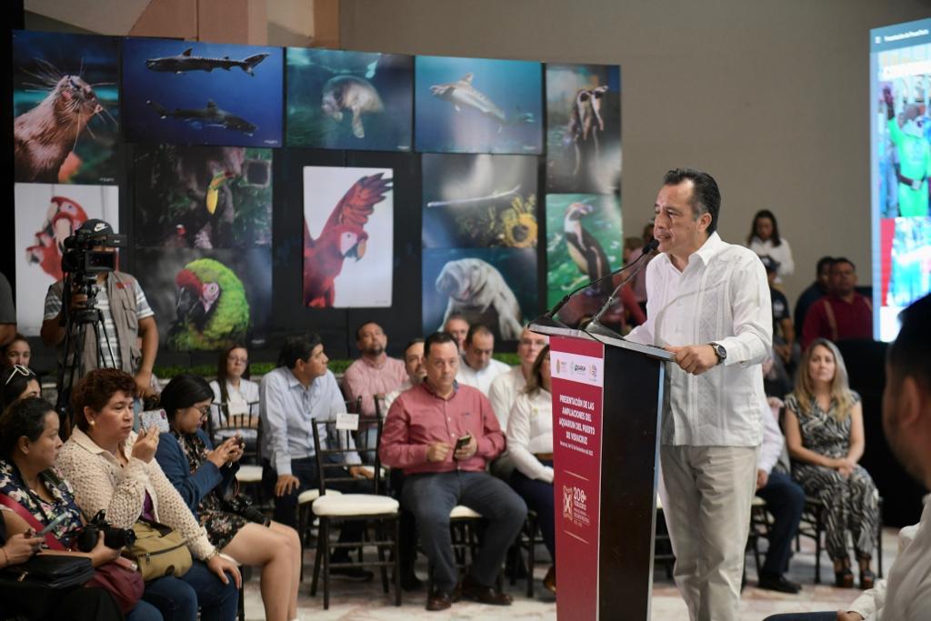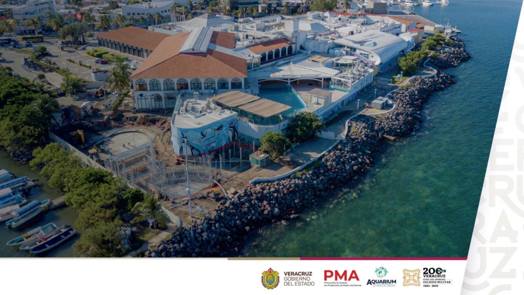 Veracruz, Ver., 13 de noviembre de 2023.- Con un presupuesto mayor a 119 millones 740 mil pesos y 40 por ciento de avance en su ampliación y modernización, el Aquarium del Puerto de Veracruz continúa la implementación de tecnología y el desarrollo de nuevos espacios, al tiempo de liberar recursos para la preservación e investigación de especies marinas sin afectar su operación diaria.