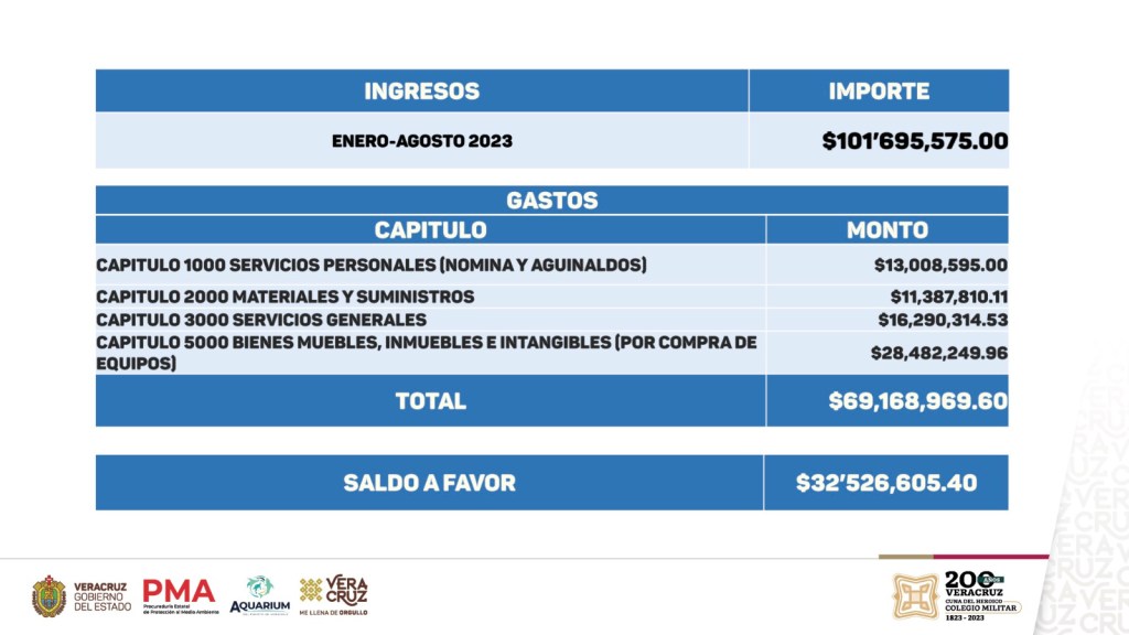“Junto con el Consejo de Administración, los alcaldes y empresarios del sector turístico hemos ido tomando decisiones para las inversiones y así levantar nuevamente Veracruz y que el Aquarium vuelva a ser el primero de Latinoamérica”, expresó el gobernador Cuitláhuac García Jiménez al dar cuenta de los ingresos y egresos de este año, los cuales arrojan un saldo de 32 millones 526 mil 605 pesos.