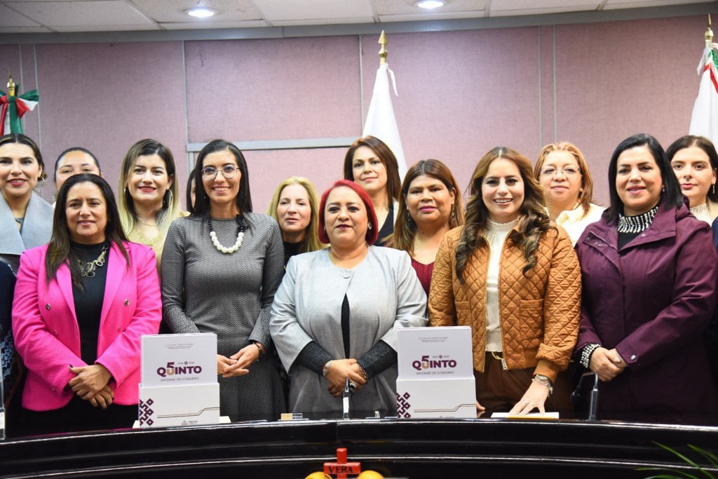 En cumplimiento con lo dispuesto en el inciso d), fracción I, del Artículo 26 de la Constitución Política del Estado de Veracruz de Ignacio de la Llave, la presidenta de la Mesa Directiva de la LXVI Legislatura, diputada Adriana Esther Martínez Sánchez, recibió de la titular de la Oficina de Programa de Gobierno, Waltraud Martínez Olvera, el Quinto Informe de Gobierno de la administración que encabeza el ingeniero Cuitláhuac García Jiménez.